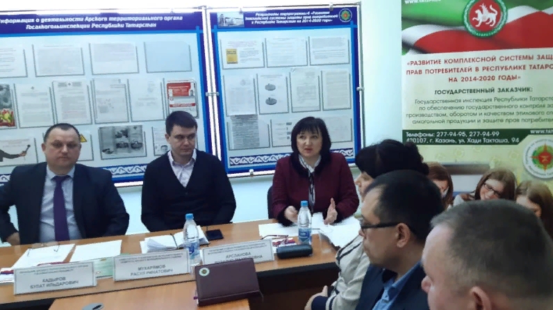 На совещании приняли участие: начальник отдела развития и координации внутреннего рынка Госалкогольинспекции Республики Татарстан Розалия Арсланова, начальник Арского территориального органа Госалкогольинспекции Республики Татарстан Булат Кадыров, начальник отдела экоономики и финансов исполнительного комитета Арского муниципального района Ильшат Набиуллин, начальники отделов территориального органа и специалисты.