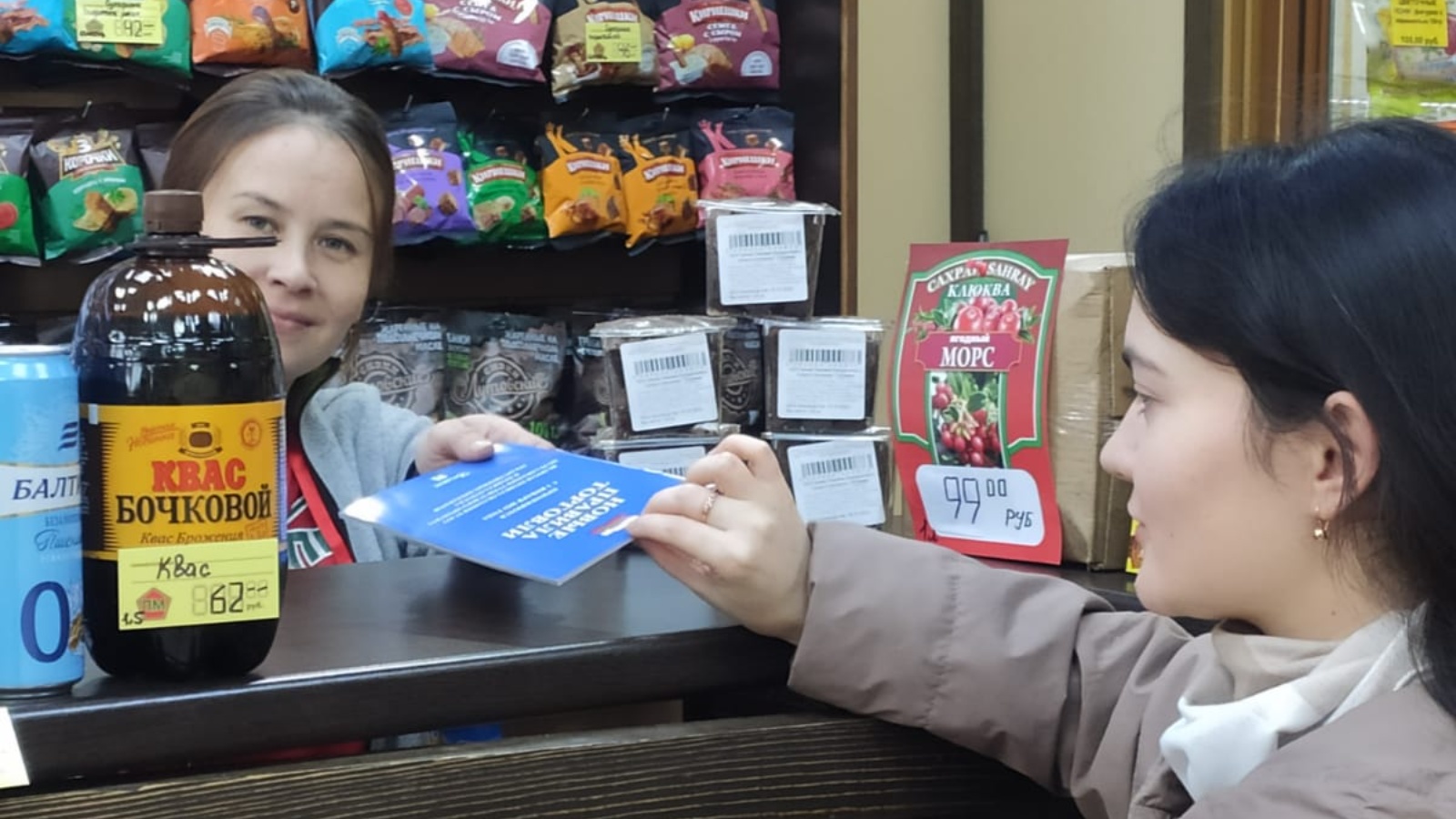 Сатучылар сатыла торган товарларга бәя белешмәләрен рәсмиләштерү кагыйдәләре һәм кулланучы почмагы, оешма билгеләре һәм товарлар турында рус телендә мәгълүматлар, алкогольле продукцияне сату кагыйдәләре турында консультация бирделәр.