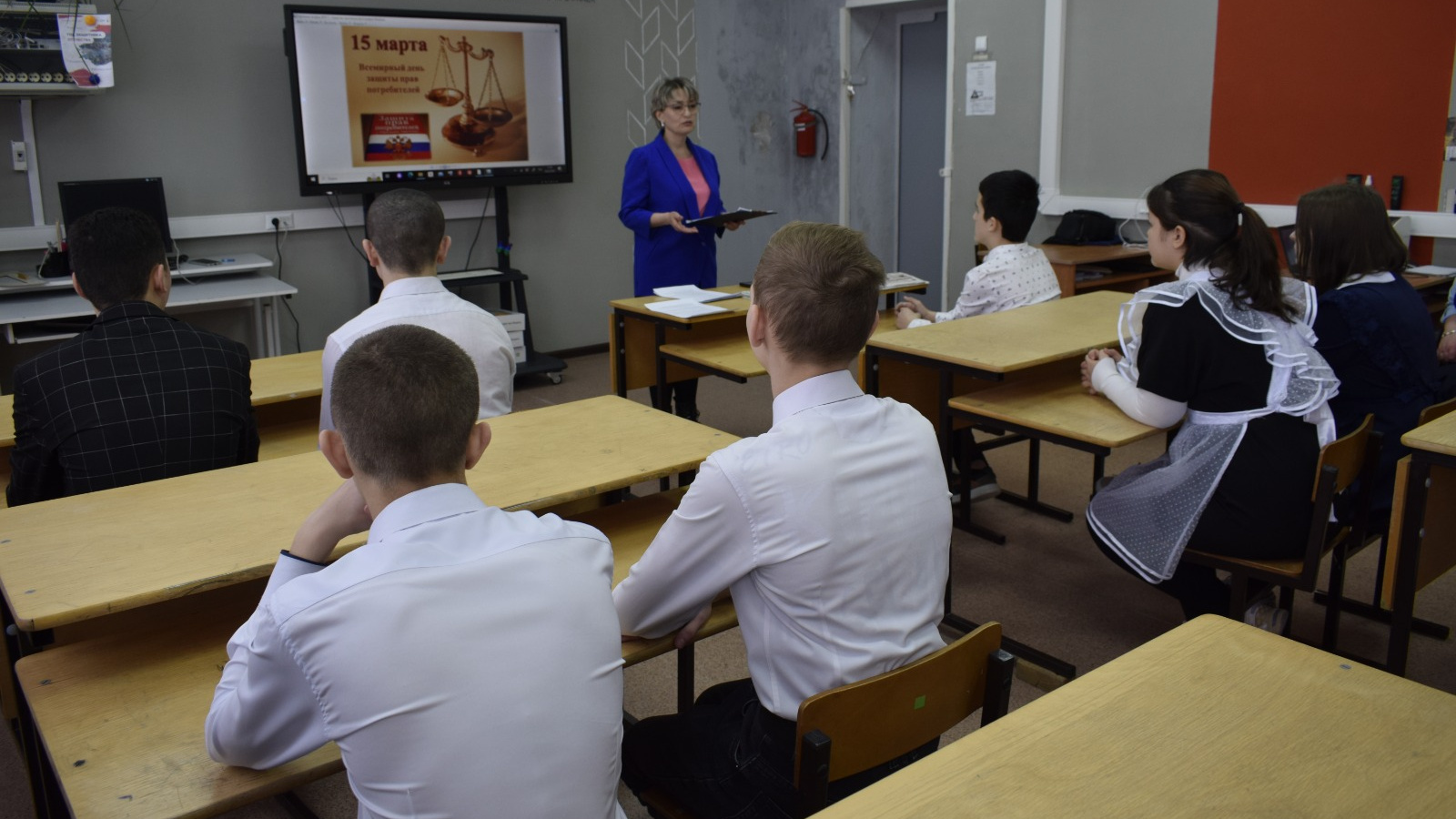 Дәрес барышында балалар Россиядә Бөтендөнья кулланучылар хокукларын яклау көненең 1992 елдан башлап ел саен 15 мартта уздырылуын белделәр. Балаларга бәйрәмнең барлыкка килү тарихы һәм Бөтендөнья кулланучылар хокуклары көнен үткәрүнең максаты турында сөйләделәр.