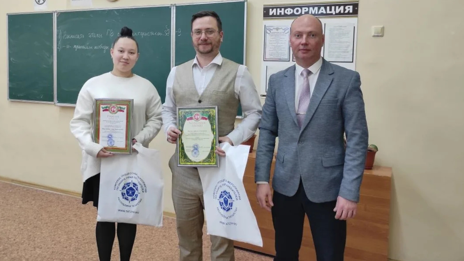 Татарстан Республикасы Дәүләт алкоголь инспекциясе җитәкчесенең Рәхмәт хатлары укучыларны Олимпиада хәрәкәтенә актив җәлеп итү исәбенә кулланучылар белемен үстерүгә зур өлеш керткән җәмгыять белеме укытучыларына һәм мәгариф идарәсе хезмәткәрләренә тапшырылды.